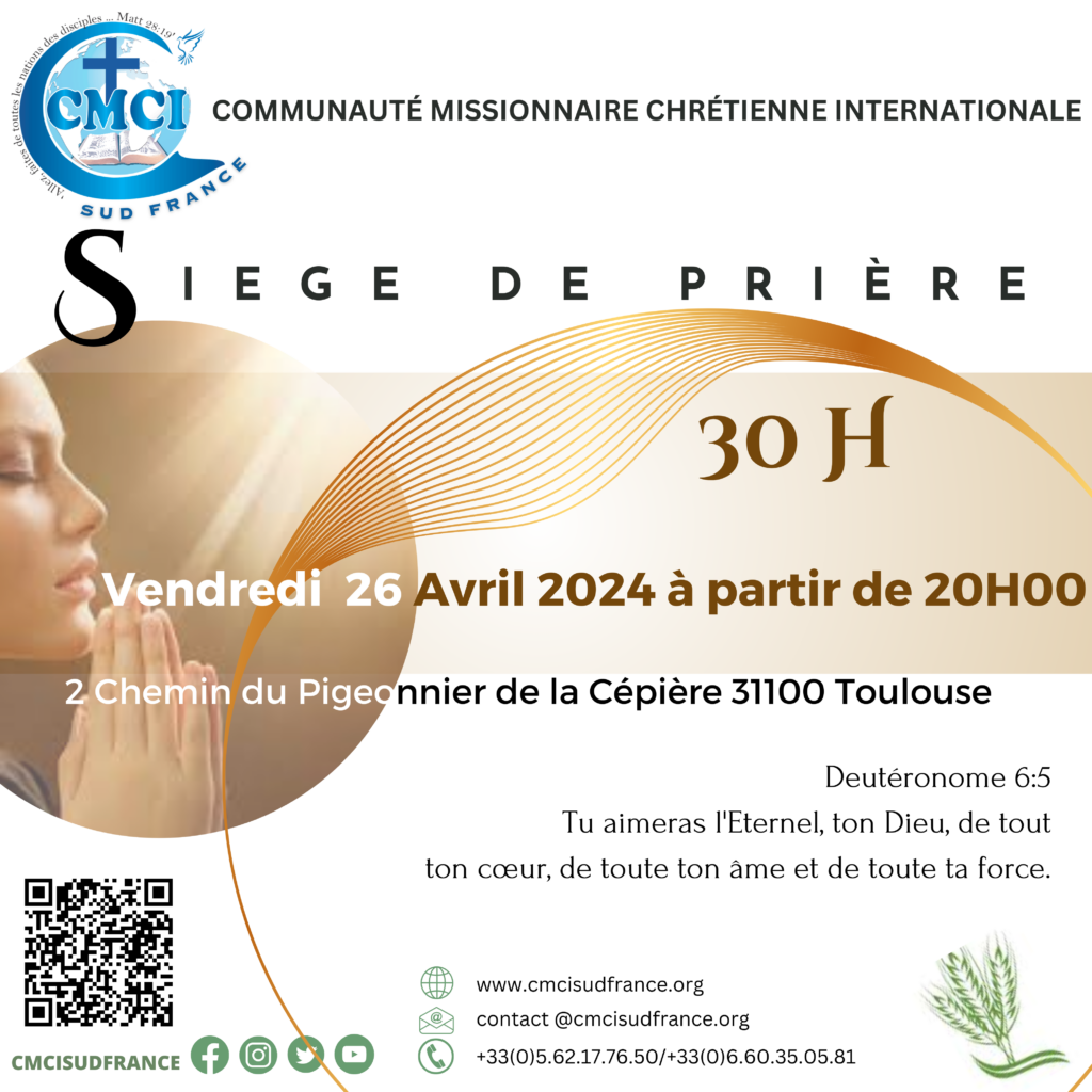 CMCI Sud France te remercie pour ton investissement dans la prière pour les desseins éternels de l’Eternel, notre Dieu.